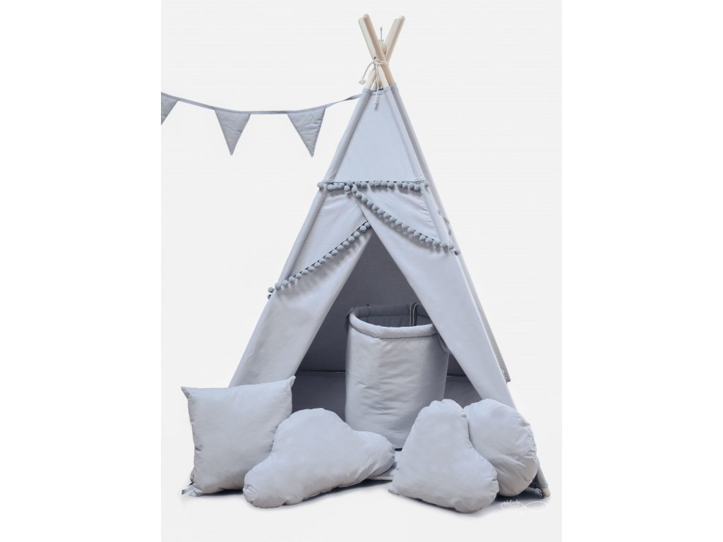 MUMMA Teepee stan - šedý POMPOM