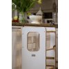 Kuchyňský pomocník je vyroben z certifikované laminované MDF. V balení najdete také dvě dřevěné tyče.