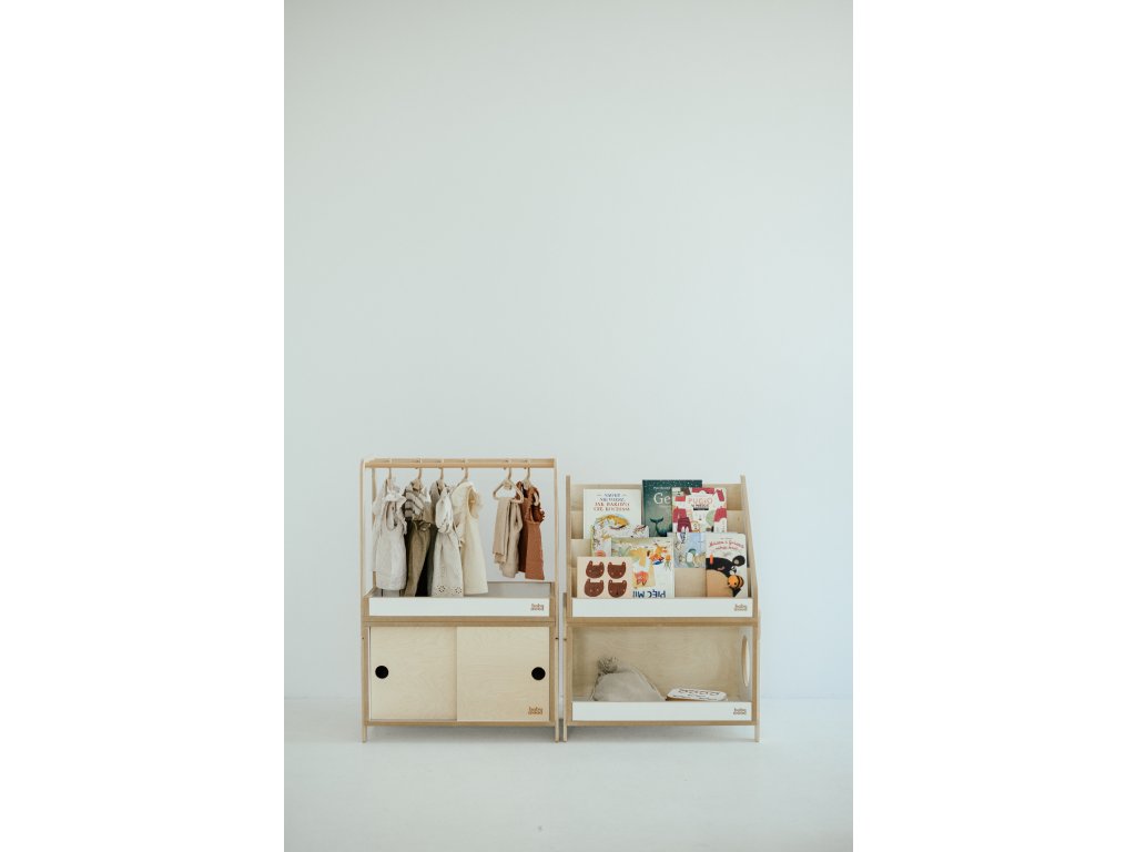Minimalistické a praktické funkční kousky nábytku, které v této sestavě umožní uložení knížek, hraček, oblečení a dalších dětských pokladů.