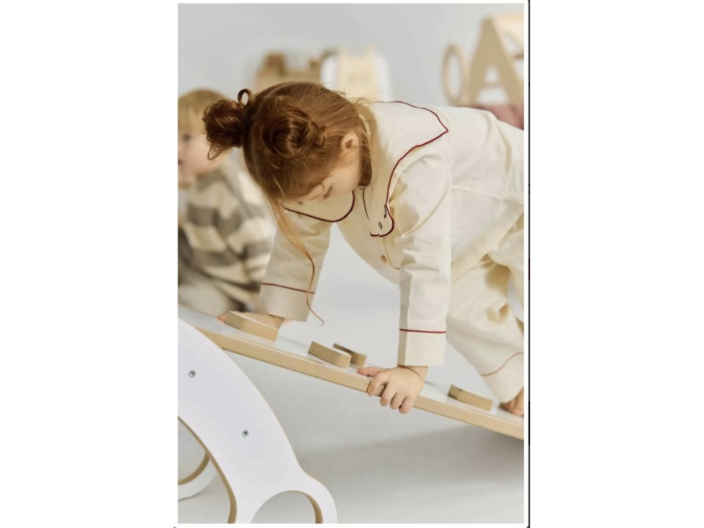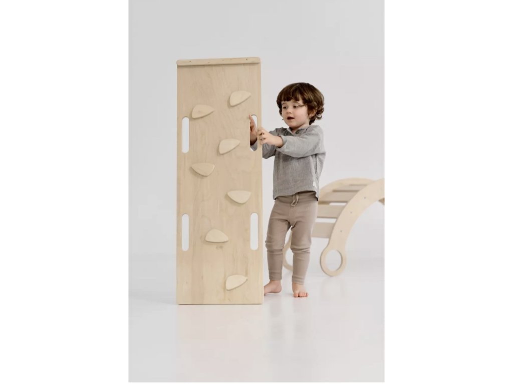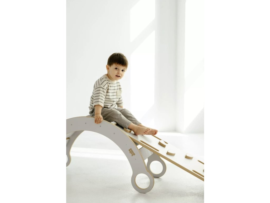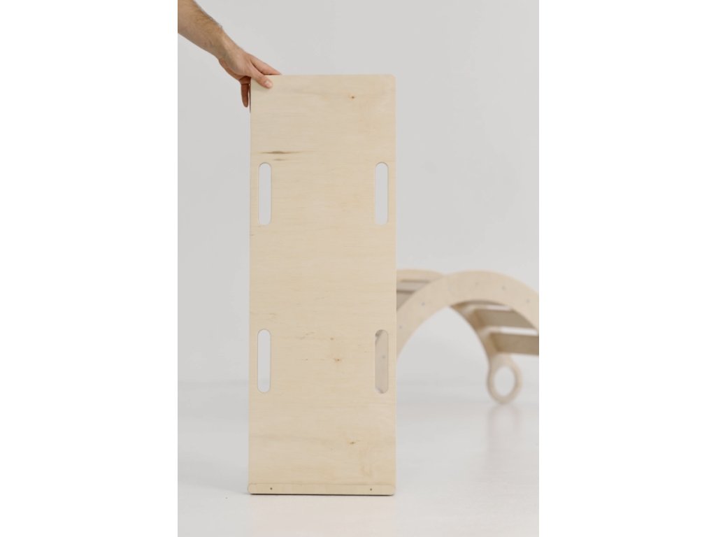 Skluzavka s lezeckou stěnou pro Montessori houpačku vel. M v dekoru přírodního dřeva.