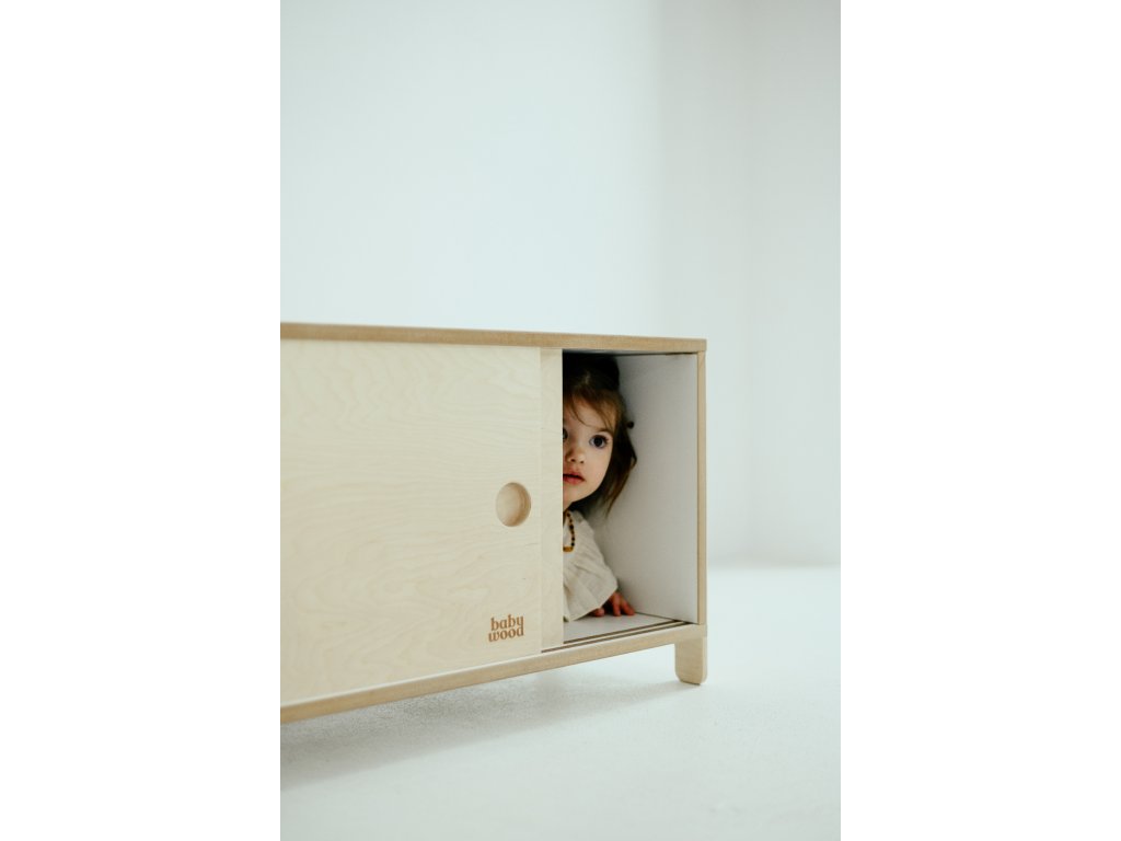 Skříňka s dvířky na dětské poklady, oblečení nebo hračky. Je ideální do kombinace s dalšími prvky z modulové kolekce.